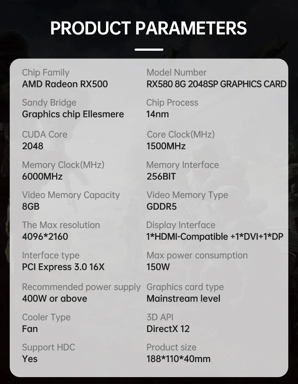 Model Number:HUANANZHI RX580 8G 2048SP A